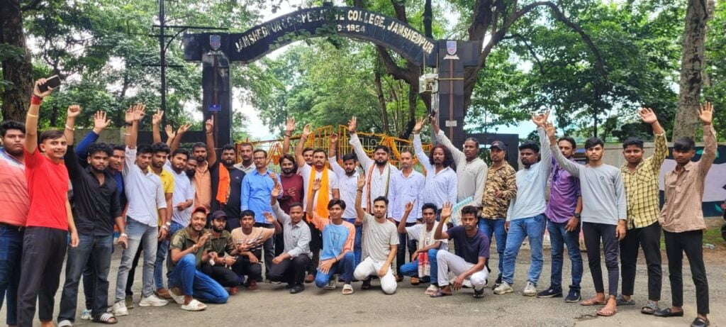 NSUI के जिला अध्यक्ष सचिन कुमार ने कहा कि छात्र संगठनों के शांतिपूर्ण आंदोलन के बावजूद प्रशासन के दम पर छात्रों को डराने का काम किया जो अनैतिक एवं संविधान के विरुद्ध है | इस स्वागत सह आंदोलन मे मुख्य रूप से पूर्व सीनेट सदस्य सोनू ठाकुर, आदिवासी छात्र एकता के संरक्षक इंद्र हेंब्रम जी, कोल्हान छात्र संघर्ष मोर्चा के अजय होनहागा जी, अभिषेक झा जी विपिन शुक्ला जी, राहुल कुमार जी, jcm के जिला अध्यक्ष कृष्ण जी, NSUI के जिला अध्यक्ष सचिन कुमार जी, AJSU के कोल्हान प्रभारी दीपक पांडे जी, कुंदन जी,सूरज सिंह जी, विद्यार्थी परिषद के नीतीश राय, नीतीश कुमार जी आदिवासी छात्र एकता के नेता राज बाँकीरा, देवानंद सिंह भूमिज जी, रमेश किस्कू जी, स्वपन सरदार जी एवं सैकड़ो छात्र कार्यकर्ता उपस्थित थे |