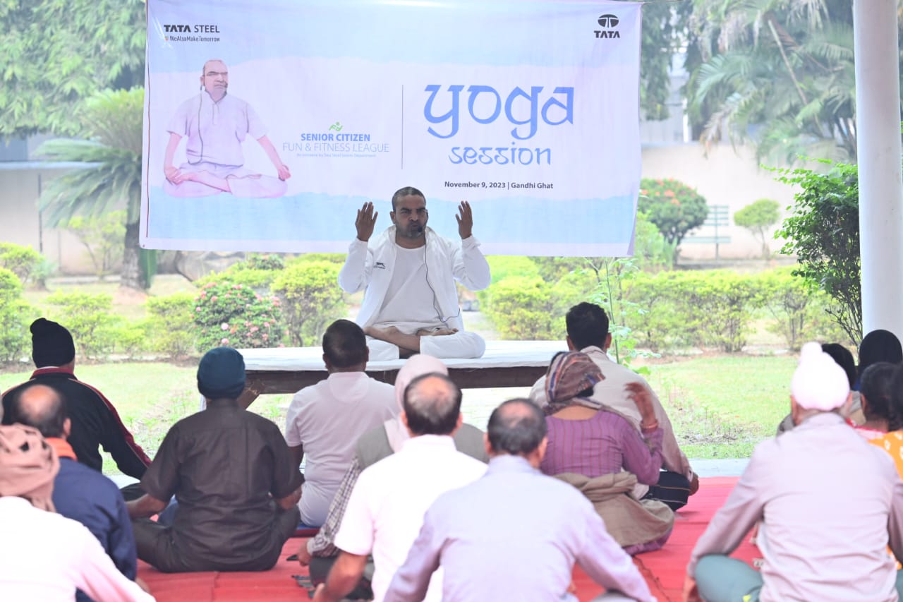 जमशेदपुर, 9 नवंबर 2023: टाटा स्टील के खेल विभाग ने आज सुबह गांधी घाट में वरिष्ठ नागरिकों के लिए योग सत्र का आयोजन किया। इस कार्यक्रम में लगभग 50 वरिष्ठ नागरिक सदस्यों ने भाग लिया।यह कार्यक्रम सीनियर सिटीजन फन एंड फिटनेस लीग श्रृंखला का हिस्सा था।