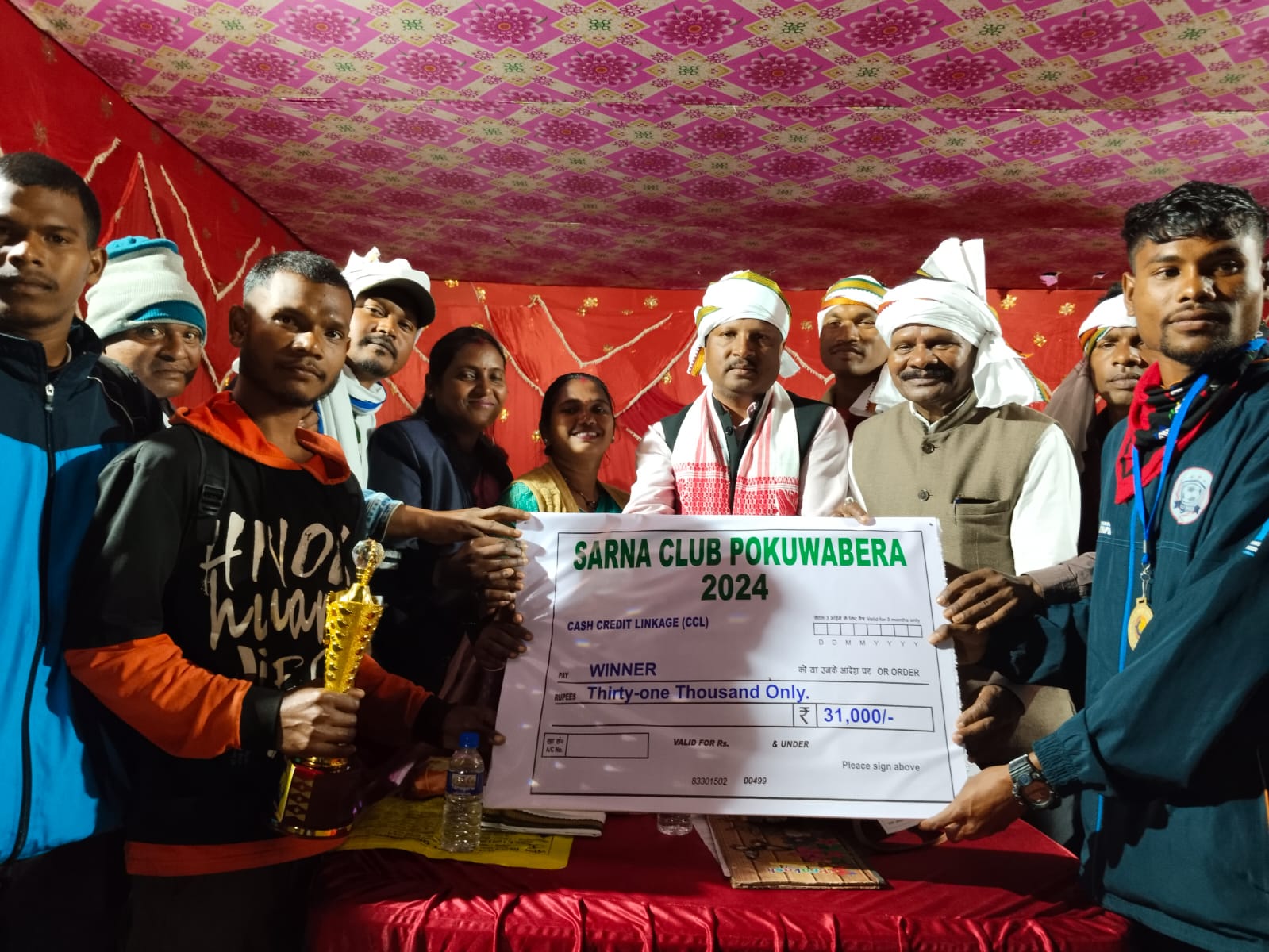 चक्रधरपुर के पोकवाबेड़ा गांव में सरना क्लब पोकवाबेड़ा के सौजन्य से तीन दिवसीय फुटबॉल प्रतियोगिता का समापन सोमवार को हुआ। प्रतियोगिता के समापन एवं पुरुस्कार वितरण समारोह में अतिथि के रुप में पूर्व विधायक शशिभूषण सामाड, समाजसेवी डॉ विजय सिंह गागराई एवं विधायक प्रतिनिधि मदन बोदरा उपस्थित थे। प्रतियोगिता का फाइनल मुकाबला गगन एंड अर्जुन फुटबॉल टीम एवं विनर टीम 2023 गुड़ासाई फुटबॉल टीम के बीच हुआ। जिसमें गगन एंड अर्जुन फुटबॉल टीम एक गोल दाग कर विजेता बना। उपविजेता विनर टीम 2023 गुड़ासाई फुटबॉल टीम एवं तीसरा स्थान लव कोम तथा चौथा स्थान अभिनाश ब्रदर्स रहा। वहीं महिला फुटबॉल खेल प्रतियोगिता में फाइनल मुकाबला केरा एफसी एवं बिरसा कल्ब लोंजो के बीच खेला गया। दोनों महिला टीम कोई गोल नहीं कर पाई। जिसमें केरा एफसी टीम एक गोल दाग कर विजेता बना। पुरुस्कार वितरण में अतिथियों ने विजेता को 31 हजार, उपविजेता को 20 हजार, तीसरा पुरुस्कार 14 हजार एवं चौथा पुरुस्कार 8 हजार दिया। वहीं महिला टीम के विजेता को 3 हजार, उपविजेता को 2 हजार रुपए पुरुस्कार दिया। फुटबॉल प्रतियोगिता में कुल 40 टीम भाग लिया। इस अवसर पर जिप सदस्य मीना जोंकों, मुखिया लक्ष्मी केराई, अध्यक्ष बीजू गागराई, समाजसेवी मंटू गागराई, सरना बोयपाई, राजू जामुदा,