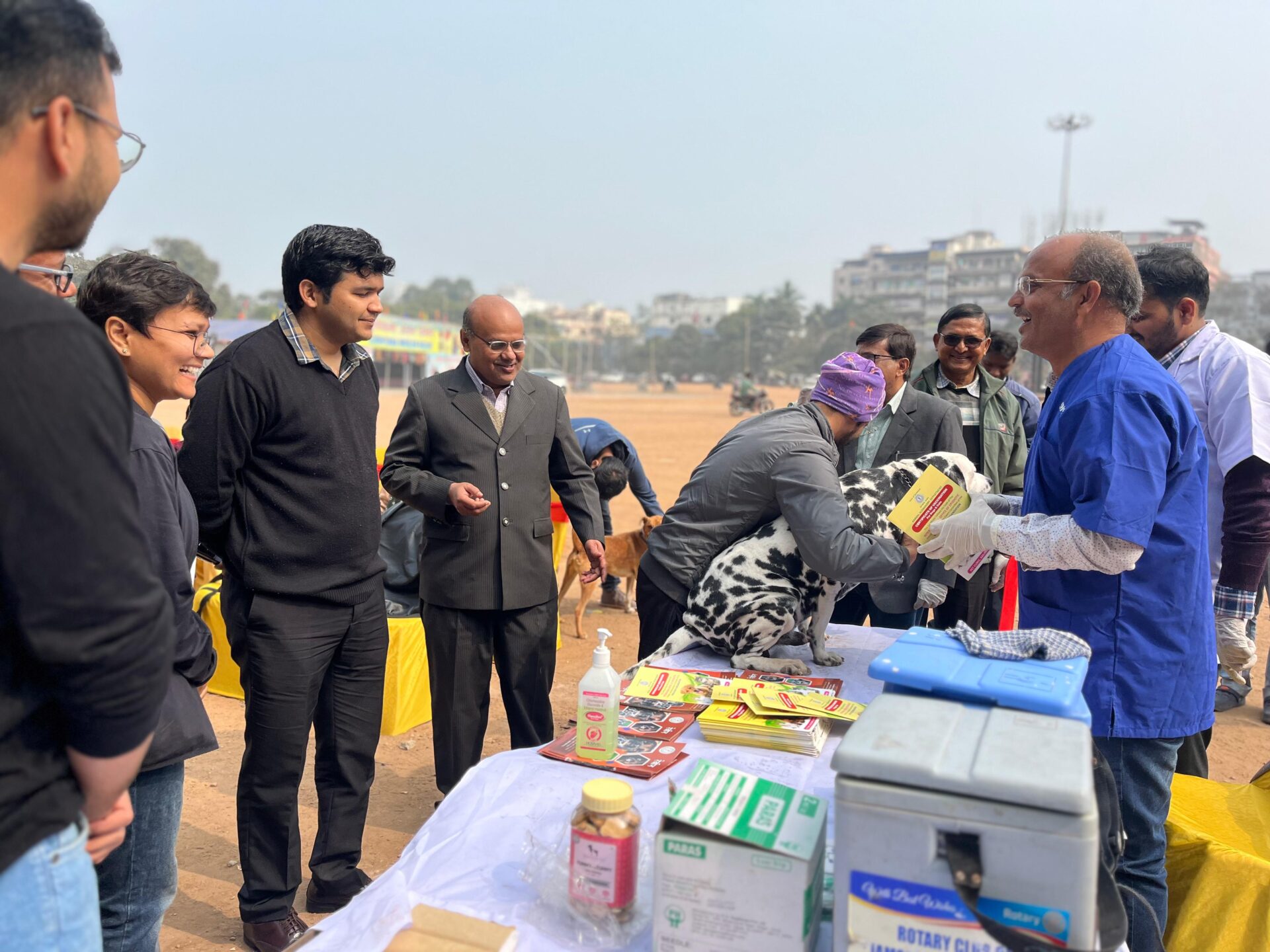आयोजन के दौरान, आम बगान, साकची मैदान में, शहर के पशु चिकित्सकों और The Stray Army के वालंटियरों ने मिलकर आवारा कुत्तों को रेबीज़ वैक्सीन से सुरक्षित किया।