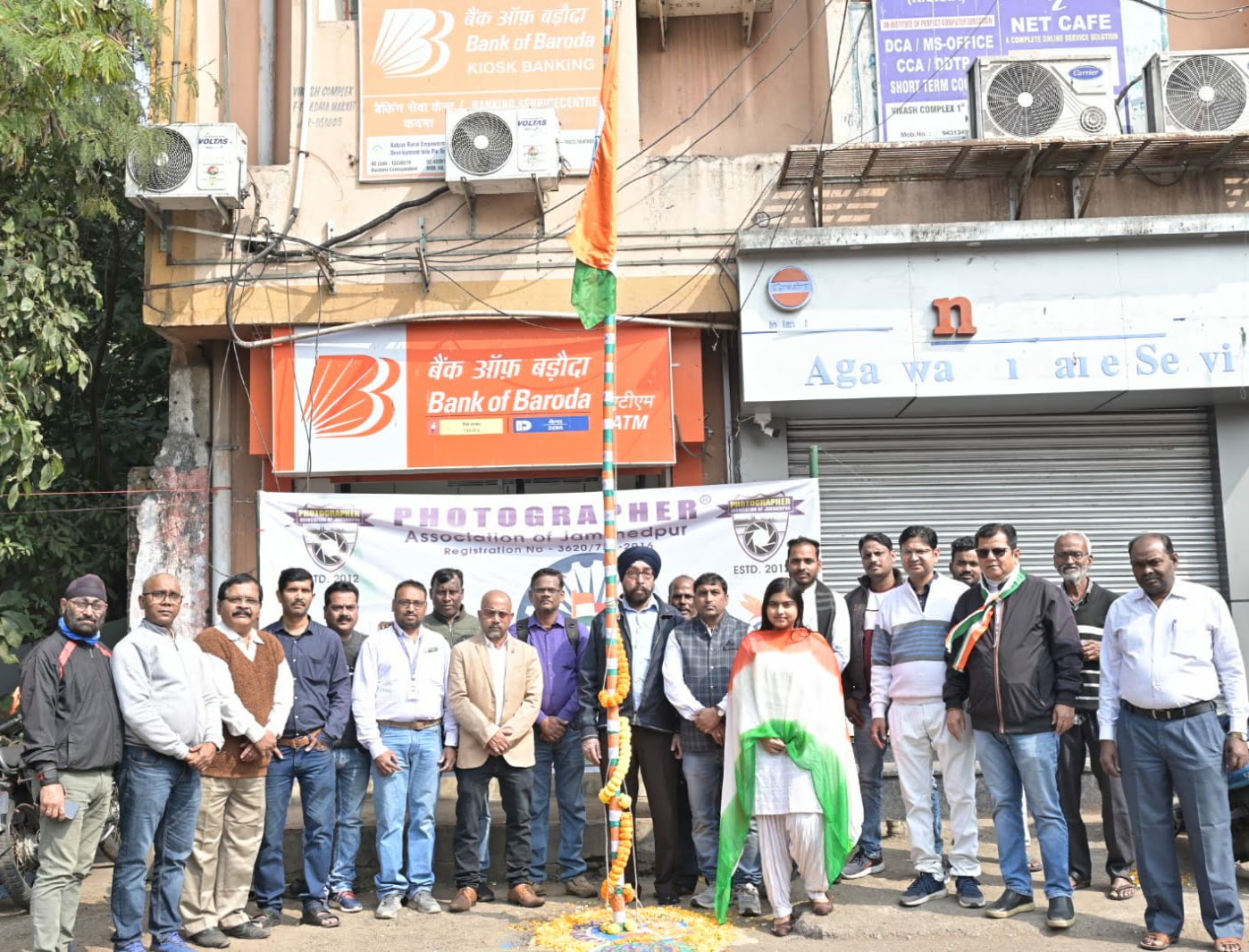 आज फोटोग्राफर एसोसिएशन ऑफ जमशेदपुर की ओर से 75वा गणतंत्र दिवस समारोह मनाया गया, गणतंत्र दिवस कार्यक्रम में झंडा तोलन हमारे संस्था के सीनियर फोटोग्राफर सरदार दीदार सिंह भोगल द्वारा किया गया। संस्था द्वारा आयोजित इस कार्यक्रम को कमेटी मेंबर और सदस्यों की एक जुटता ने सफल बनाया। उपरोक्त कार्यक्रम में संस्था के संस्थापक सदस्यों मे रुपेश कुमार टी सुभाष बाला मुकेश प्रसाद बाबूलाल प्रसाद के साथ संस्था के सचिव रुपेश कुमार सह सचिव सरदार दलजीत सिंह कोषाध्यक्ष सोमेन सरकार सह कोषाध्यक्ष शिवशंकर गोराई रवि कुशवाहा राजेश चौहान सरदार रंजीत सिंह गाबरी सामिल हुए।