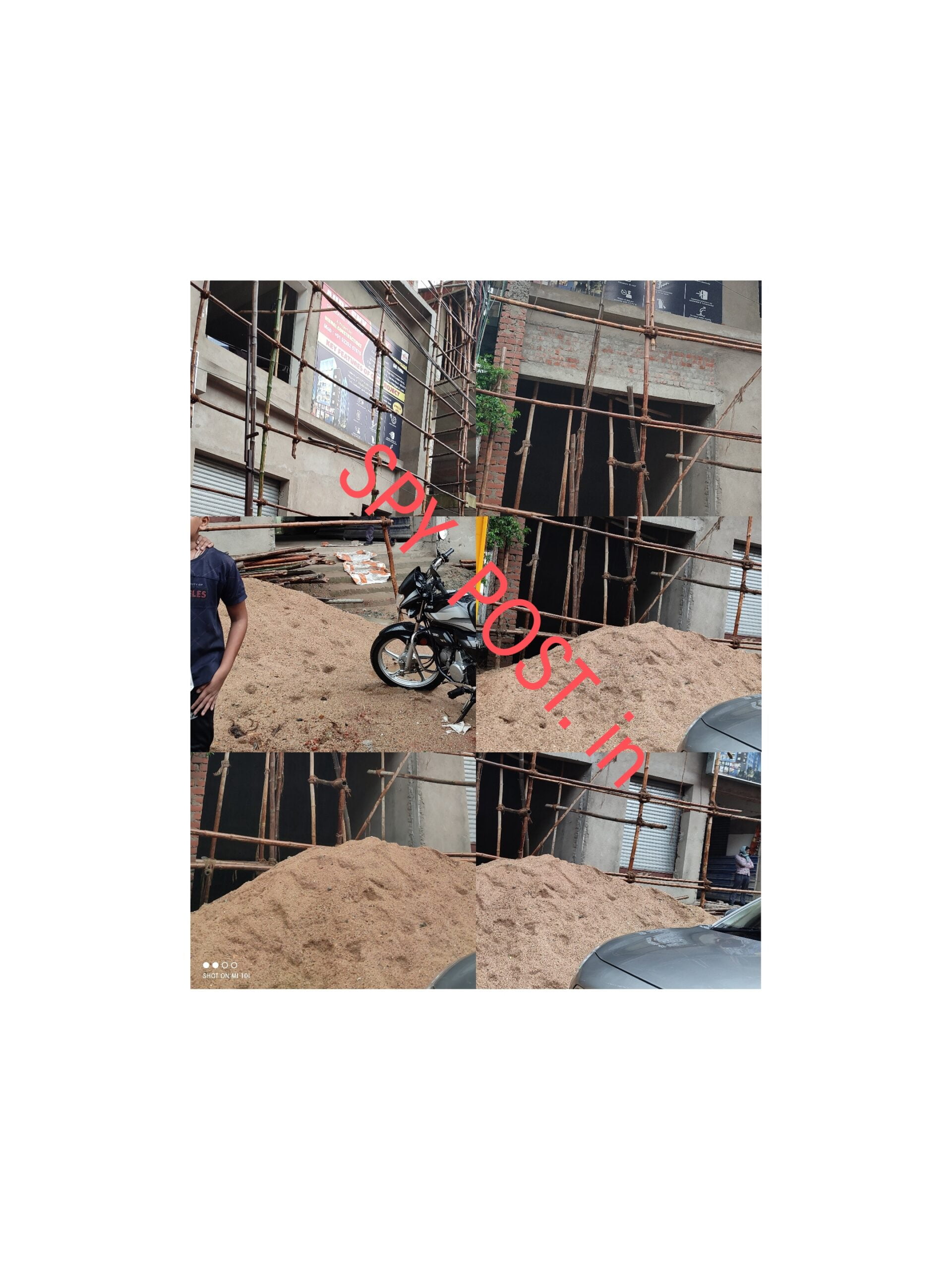 बीच सड़क पर निर्माण सामग्री का डंपिंग यार्ड बनाकर हो रहा बहुमंजिला भवन का निर्माण कार्य ….