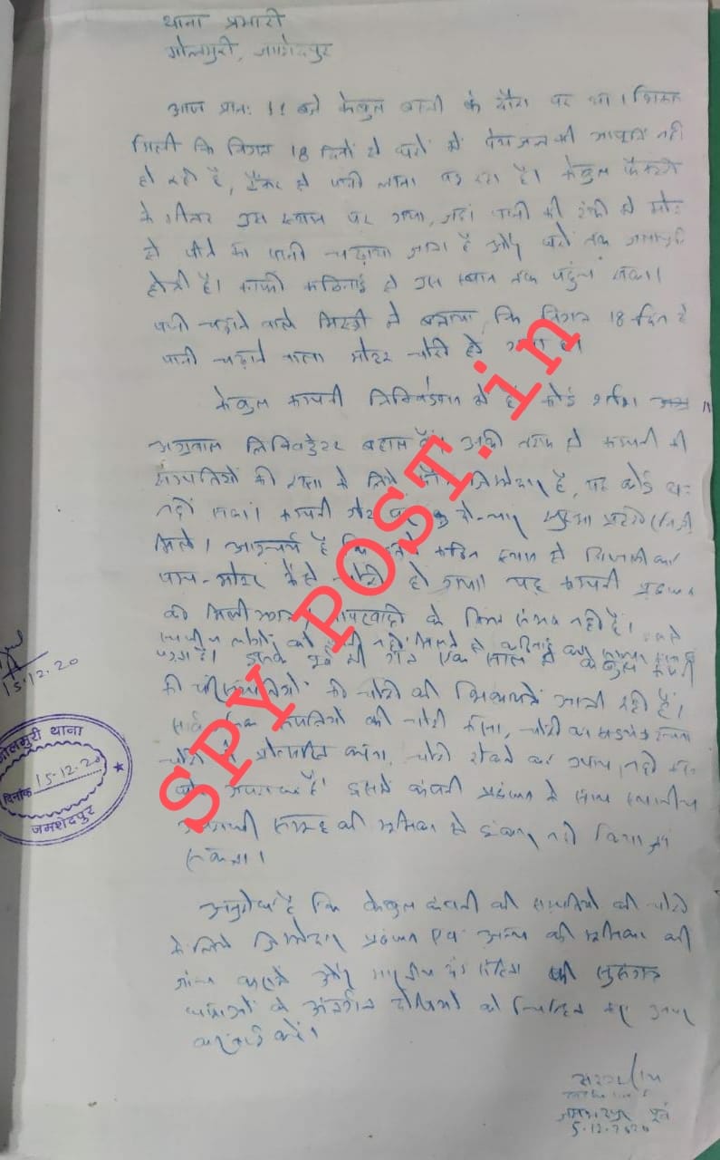 केबल कंपनी मशीन चोरी प्रकरण में विधायक सरयू राय ने गोलमुरी थाना में लिखित शिकायत दर्ज तो कराई परंतु नहीं करवा सके 𝙁. 𝙄. 𝙍…..