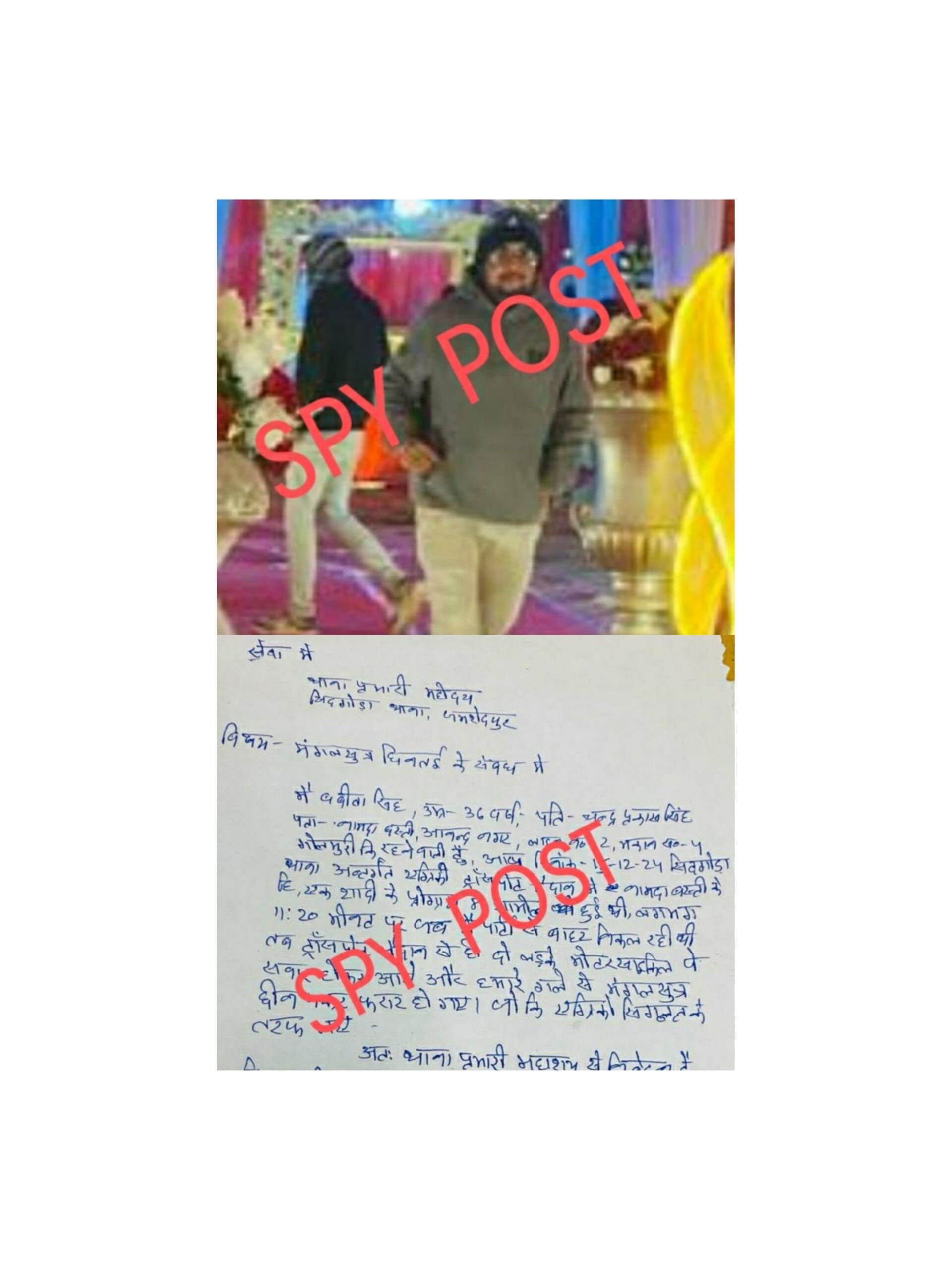 मफलर पहना उसका सहयोगी पीछे बैठा। इस घटना की शिकायत पीड़िता ने सिदगोडा थाने में लिखित रूप से की है। और साथ ही उस उचक्के की तस्वीर भी सिदगोडा थाना को उपलब्ध कराई है।