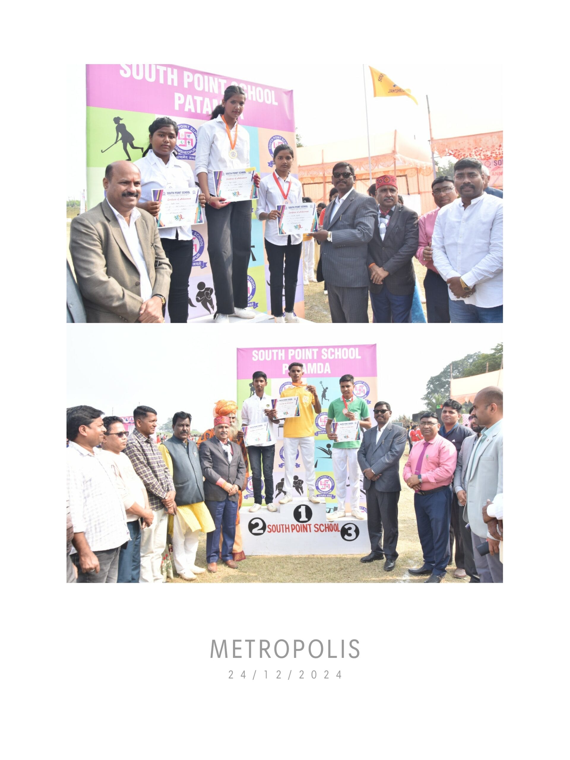 साउथ प्वाइंट स्कूल ,पटमदा में 8वीं वार्षिक खेलकूद प्रतियोगिता का आयोजन बड़े धूमधाम से हुआ.। विद्यालय के खेल परिसर में आयोजित इस आयोजन में मुख्य अतिथि झारखंड के पूर्व मुख्यमंत्री, जनजातीय कल्याण मंत्री, भारत सरकार के पूर्व कृषि मंत्री , और वर्तमान में राष्ट्रीय तीरंदाजी महासंघ के अध्यक्ष श्री अर्जुन मुंडा जी थे ।उनकी अध्यक्षता स्कूल के चेयरमैन श्री शिव प्रकाश शर्मा जी डायरेक्टर श्री शिवम शर्मा जी, प्राचार्य श्री अरुण कुमार सिंह जी ने की। विद्यालय के चेयरमैन ने पुष्पगुच्छ और स्वागत संबोधन देकर मुख्य अतिथि का अभिनंदन और स्वागत किया । सबसे पहले मुख्य अतिथि ने ध्वजारोहण और मशाल जलाकर परेड की अनुमति दी। इस अवसर पर विद्यालय के चारों सदनों के बच्चों ने मार्च पास्ट का प्रदर्शन कर मुख्य अतिथि को सलामी दी। तत्पश्चात बच्चों के समुह ने स्वागत गीत और स्वागत नृत्य के माध्यम से अतिथियों का स्वागत किया. ।समारोह में —अशोक तिवारी जी जेवियर हाई स्कूल के अध्यक्ष,जेवियर पब्लिक स्कूल सुनील कुमार , खोगेन महतो,पार्षद,प्रदीप बेसरा पार्षद , सहित अन्य शिक्षाविद भी उपस्थित रहे. मुख्य अतिथि ने अपने संबोधन में इस प्रकार के आयोजनों की सराहना की, खासकर ग्रामीण क्षेत्रों में. उन्होंने कहा कि ऐसे आयोजन से बच्चों के खेल कौशल को बढ़ावा मिलता है और शिक्षकों का योगदान भी अत्यंत सराहनीय है. विद्यालय के खेल प्रशिक्षक संतोष कुमार तिवारी के निगरानी में शैक्षणिक सत्र 2024 – 25 के तहत बालक और बालिकाओं के लिए अलग-अलग कई प्रतियोगिताओं का आयोजन किया। जिसमें जंपिंग रेस ,बनी रेस, हार्डल रेस ,100 मीटर रेस, 200 मीटर रेस, 400 मीटर रेस, रिले रेस के साथ-साथ कई प्रकार के ड्रिल जैसे मनोरंजन खेल की गतिविधियां हुई साथ ही ताइक्वांडो का प्रदर्शन भी किया गया। प्रतियोगिता में उत्कृष्ट प्रदर्शन करने वाले प्रथम, द्वितीय और तृतीय स्थान पर रहने वाले प्रतिभागियों को मेडल और प्रमाण – पत्र देकर सम्मानित किया गया। मुख्य अतिथि के द्वारा विजेता खिलाड़ियों को पदक और प्रमाण पत्र प्रदान कर सम्मानित किया गया. विभिन्न वर्गों में आयोजित स्पर्धाओं के परिणाम इस प्रकार रहे: