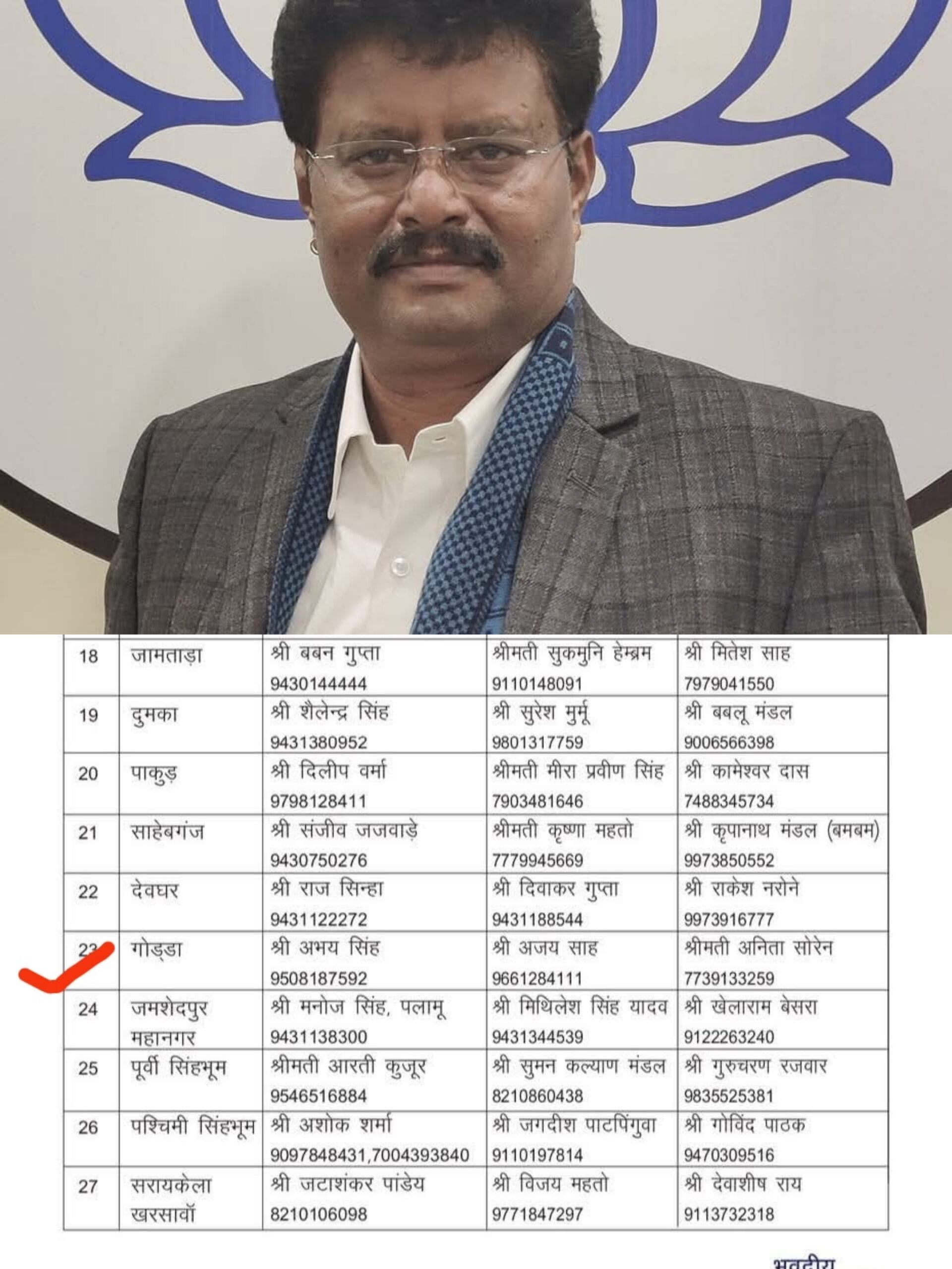 अभय सिंह गोड्डा के संगठन चुनाव प्रभारी नियुक्त…..